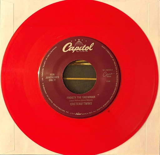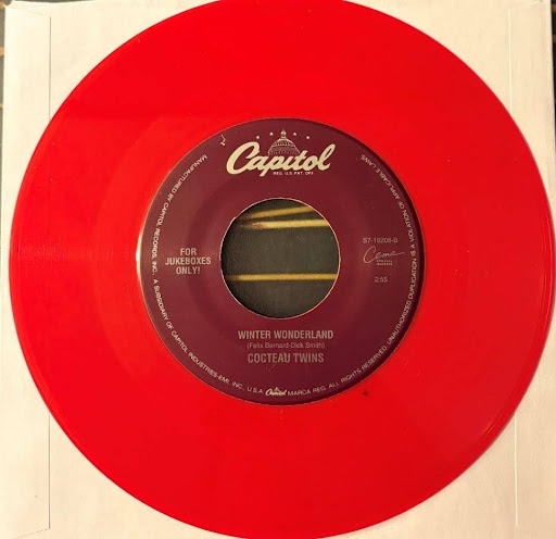 Back in 1993, an unlikely band recorded two songs for a holiday single. The band, the Scottish Dream Pop pioneers, The Cocteau Twins. The two songs. Frosty the Snowman and Winter Wonderland. Strange bedfellows indeed. The CD single Snow was released on Fontana Records, with an estimated 5,000 copies printed. If you read my previous article on Dark Mark’s album Dark Mark Does Christmas, you know that I love unique takes on Christmas songs and The Cocteau Twins do not disappoint. I honestly have never heard a more beautiful song than their version of Frosty the Snowman. Don’t believe me? It’s free to listen to on Youtube. Go ahead, take a few minutes and give it a go, I’ll wait. (Insert intermission music here). Done? I hope you find it as haunting as I do. Elizabeth Frasier could sing the label off of a can of Pledge Dust & Allergen Multisurface Cleaner and I’d be captivated. Now, here’s the part that will interest the vinyl nerd in you. They released the two songs on a 45 single labeled “For Jukeboxes Only”. This red vinyl contains the two tracks mentioned but is rarer than rocking horse crap. I have been looking for one for quite some time and have always come up empty handed. Then on Feb 3, 2026, on a site that I am sure you all are familiar with, Discogs, it surfaced…in Indonesia.