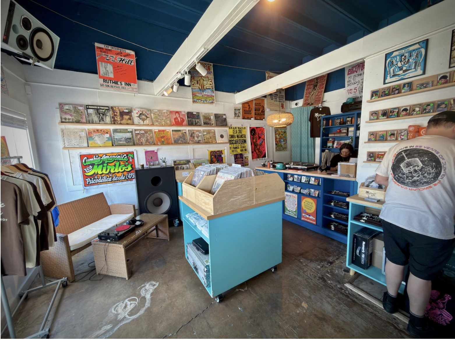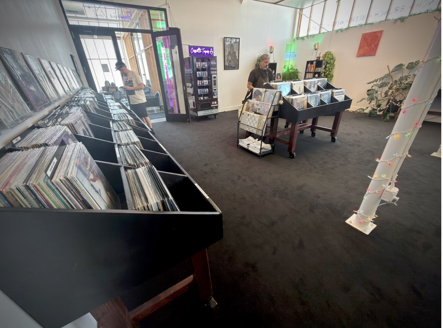 It was an odd experience flipping through records while smelling bananas that were being turned into smoothies just 15 steps below where you’re standing.
