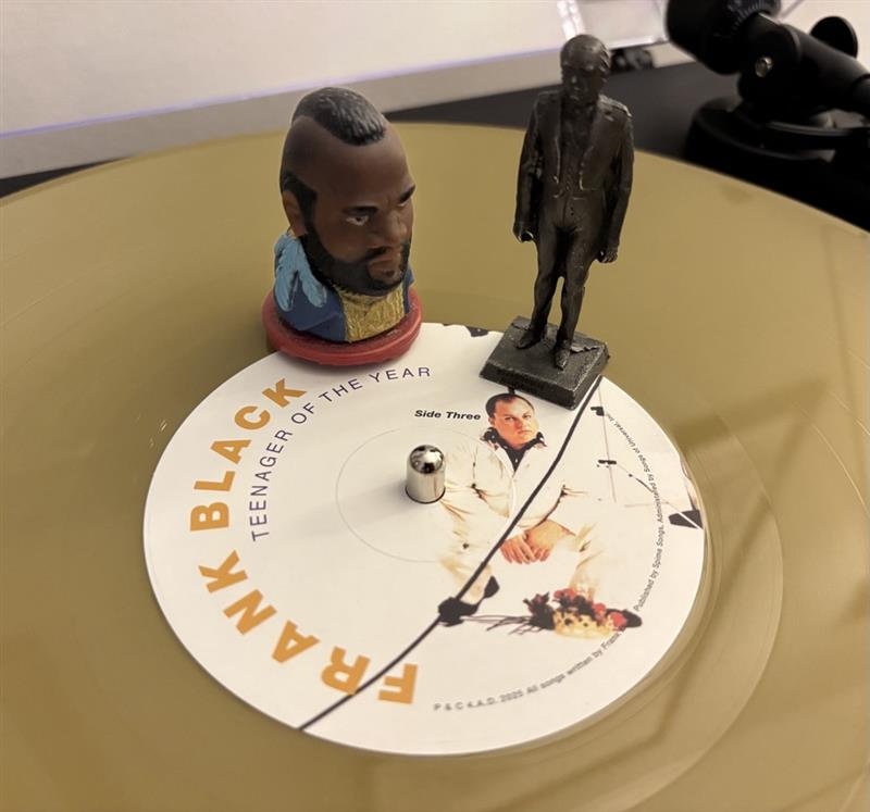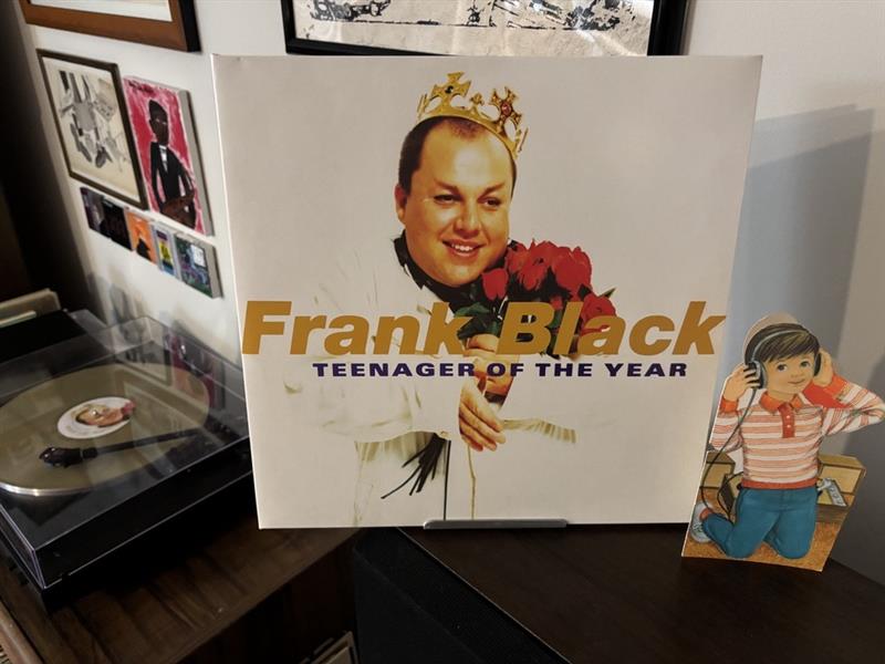[Rich] As I faithfully observed Frank Black Friday through the years, I made playlists of tunes from across his discography (but no Pixies! FBF is a Frank Black thing). Still, Teenager of the Year continued to be my go-to Frank Black album to listen to straight through. Even though the album was released when compact discs ruled, I secretly pined for a vinyl Teenager of the Year. Earlier this year, 2025, that dream came true. Frank Black reissued his masterpiece as a beautiful double album and was planning a tour in which he was going to play the whole thing, with all the band members from the original recordings! Huzzah!